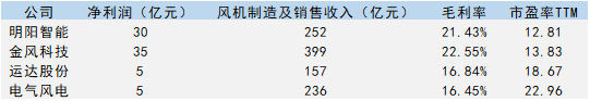 相较二、三梯队厂商,以明阳智能、金风科技为首的风机龙头拥有较强的资金实力,有利于在持续的低价竞争中保持良好经营效率。最终,在价格战的消耗下,没有资金和规模优势的中小厂商更容易出现财务危机以致淘汰出局,市场份额将进一步向龙头集中。