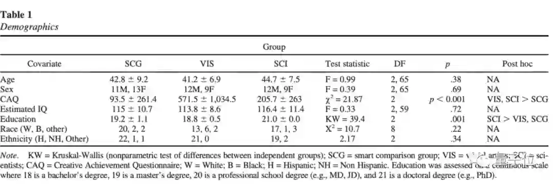 同时研究团队保证,除了创造性这一项变量之外,确保所有实验对象的年龄、族裔、智力等因素大致相同。