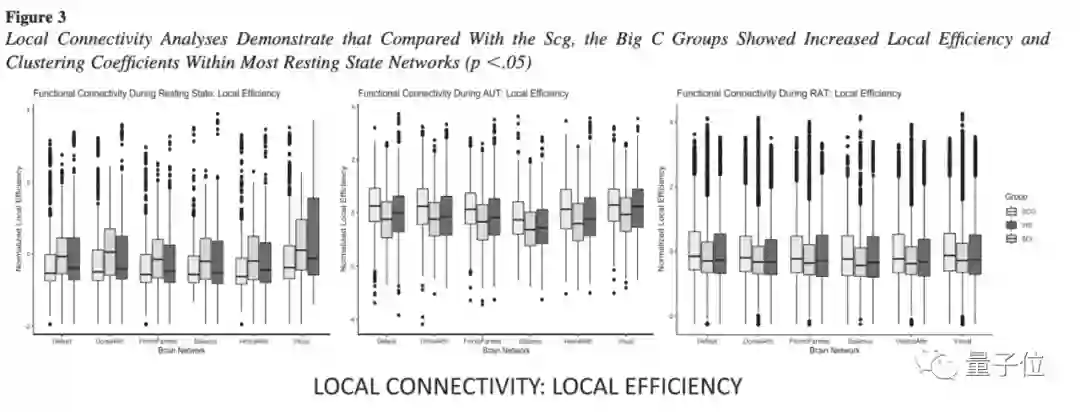 除此之外,分析结果还显示,在休息状态下,创造力更高的人,大脑局部区域拥有更高的处理能力,