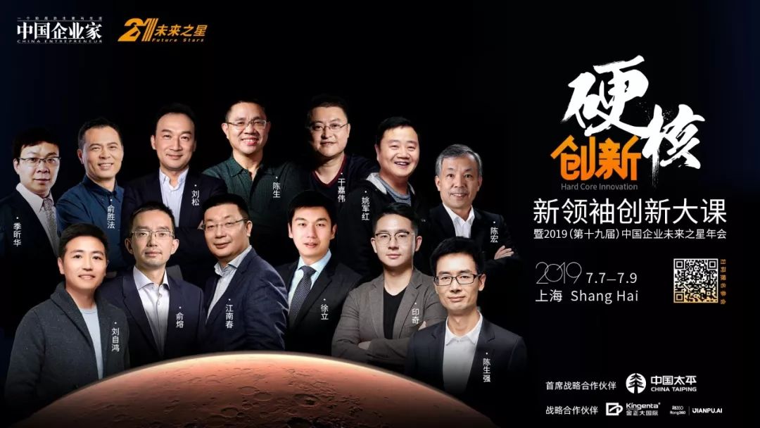 7月7日至9日,新领袖创新大课暨2019(第十九届)中国企业未来之星年会将在上海举行。江南春、俞熔、印奇、徐立、刘自鸿、陈生强、陈生、干嘉伟、刘松、俞胜法、陈宏、季昕华、姚军红等大咖确认出席,2天4大模块18堂创新大课+私密的创新小灶,半天新领袖标杆企业实地拜访,高管团队私密分享,就等你来。点击下图直接报名 ▼▼▼
