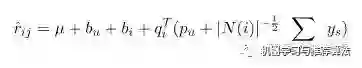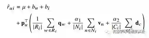 在用户除了显式评分外,隐式反馈信息同样有助于用户的偏好建模,因此随后提出了SVD++。它是基于这样的假设:用户除了对于项目的显式历史评分记录外,浏览记录或者收藏列表等隐反馈信息同样可以从侧面一定程度上反映用户的偏好,比如用户对某个项目进行了收藏,可以从侧面反映他对于这个项目感兴趣,具体反映到预测公式为: