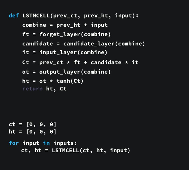 如上所述,LSTM网络的控制流程不过是几个张量操作和一个for循环而已。