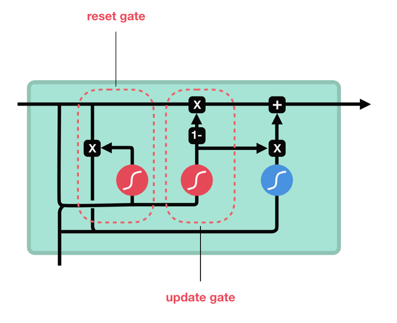 更新门的作用类似LSTM的遗忘门和输入门,它决定要丢弃的信息和要新添加的信息。