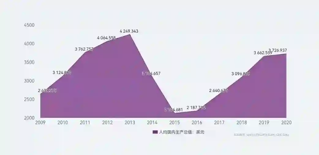 乌克兰人均GDP变化曲线,2014年颜色革命之后开始回升