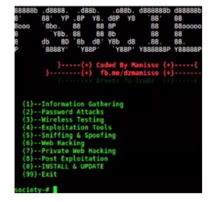 Fsociety:黑客工具包。渗透测试框架[Github上1585颗星]。由Manis Manisso提供