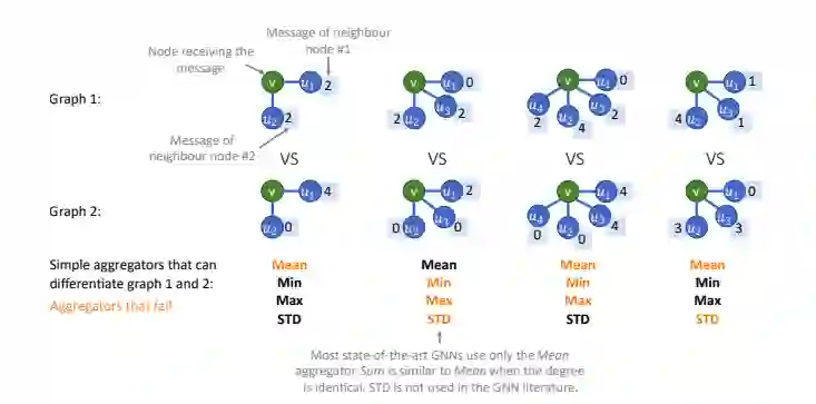 使用单个GNN层和连续输入要素空间,一些聚合器无法区分邻域消息。同时研究还发现聚合器是互补的,至少有一个聚合器始终可以区分不同的邻域消息。