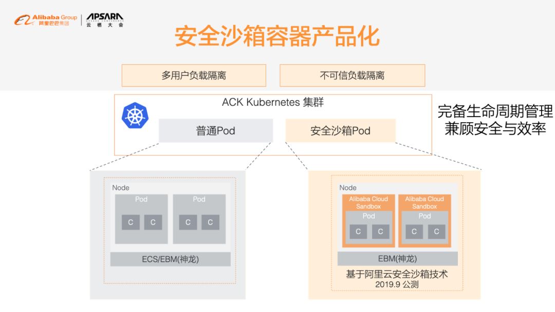 对于用户而言,如果需要多租户隔离的场景,可以采用安全沙箱配合 network policy 来完成,当然也可以让不同租户的应用运行在不同的虚拟机或者弹性容器实例上,利用虚拟化技术来进行隔离。