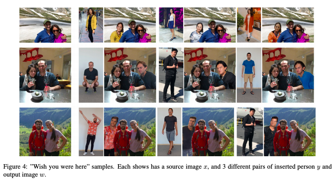 论文题目也很有代入感「Wish You Were Here」,出去旅游拍了很多照片,但是好友没能同行很是遗憾,有了这个AI系统,只需要一张好友的照片,好友就能隔空加入!