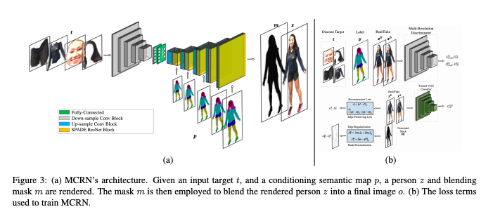 多条件渲染网络(MCRN),在给定语义姿势图和分割目标人物的情况下,渲染现实人物。