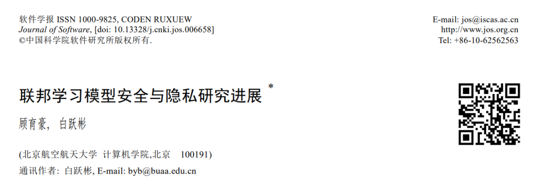 随着联邦学习的快速发展和广泛应用,联邦学习模型的安全和隐私问题吸引了许多学者的兴趣和关注,产 生了不少瞩目的研究成果,但目前相关的研究还处于初级阶段,尚有许多关键问题亟待解决.本文在充分调研和深入分析的基础上,对联邦学习在安全和隐私领域最新的研究成果进行综述,系统总结了联邦学习存在的安全 和隐私攻击,并对现有的防护方法进行科学地分类和分析.同时,本文也指出了当前联邦学习在安全和隐私领域 尚未解决的问题,并探讨未来的研究方向.