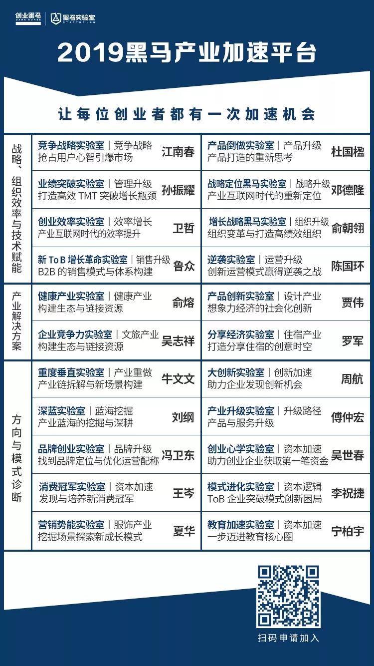 黑马成长营11期;俞熔·健康产业实验室1期;牛文文·重度垂直实验室2期