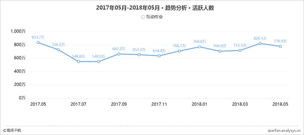 互动作业App以线下学校为单位建立校友排行榜,利用现实中的强关系刺激中小学生使用的活跃度。但随着作业类App争相上线参与竞争,暑期学生作业搜索需求减少,以及家长加强对孩子使用手机行为的关注与控制等各方原因,互动作业App的活跃用户规模在去年上半年有所下降。