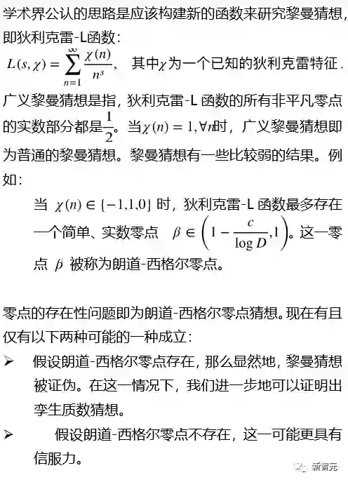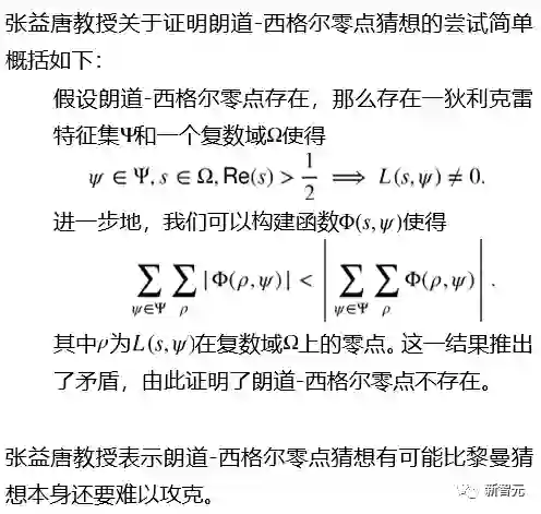 据澎湃新闻援引一位数论学者的解释,以往的很多论文,要假设朗道-西格尔零点猜想成立(也即假设西格尔零点不存在)。