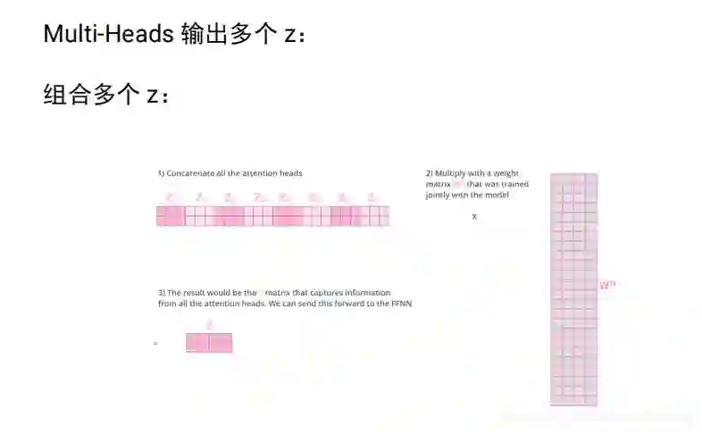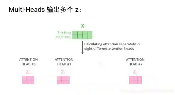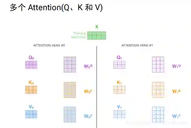 实际中是多个head, 即多个attention(多组qkv),通过训练学习出来的。不同attention关注不同的信息,指代消解 上下位关系,多个head,原始论文中有8个,每个attention得到一个三维的矩阵