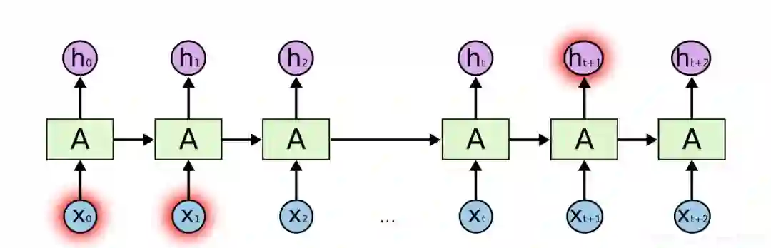 顺序依赖,如下图:t依赖t-1,t-1依赖t-2,串行的,很难并行的计算,持续的依赖的关系,通常很慢,无法并行: