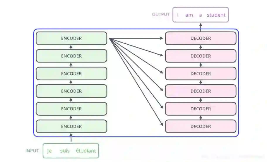 本质也是一个encoder与decoder的过程,最起初时6个encoder与6个decoder堆叠起来,如果是LSTM的话,通常很难训练的很深,不能很好的并行