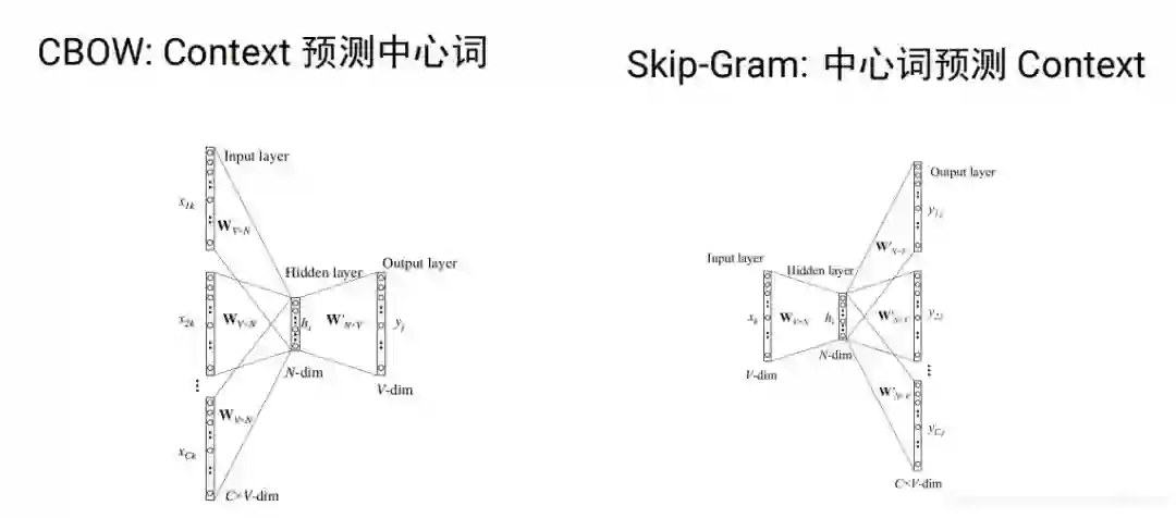 word2vec分为cbow(根据context预测中心词)和skip-gram(根据中心词预测context)两种。
