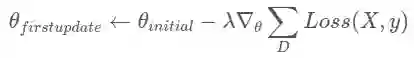 其中 D 是一个样本集合(mini-batch),θ 是所有参数的集合,λ 是学习率,Loss(X, y) 是某个损失函数在 D 中所有样本上的均值。