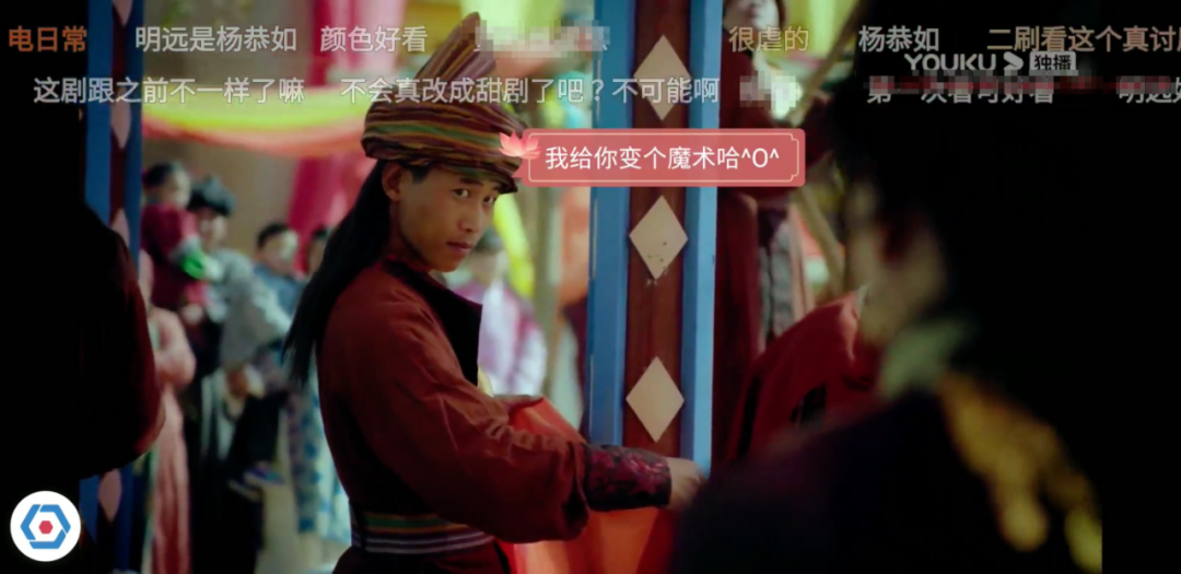 喜欢用优酷看视频发弹幕的同学应该已经发现,很多剧都上线了基于 AI 人脸识别的跟随弹幕,以往的普通弹幕或高级弹幕都是在播放器顶端自右向左以跑马灯式的效果展示,而这种跟随弹幕是以气泡样式挂在人物头像旁边,随着人物移动而移动。这种跟随弹幕可玩性更高,有才网友可发挥余地更大。