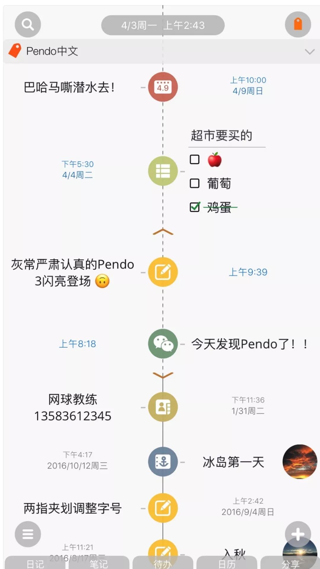 Pendo 帮大家经营人生琐碎,串成一条时间的轴线