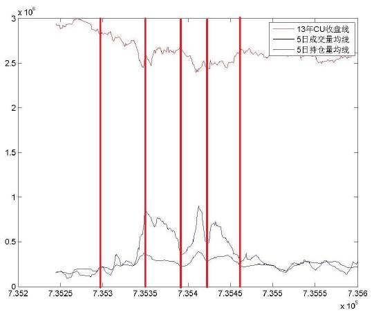 (3)2013 年Cu 的成交量、持仓量与价格走势图