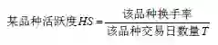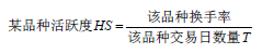由于标的换手率越高意味着背后的交易越活跃,而期货换手率是通过成交量和持仓量综合得出的结果,其中持仓量是期货市场行情发展的内在动力,增仓说明多空双方对当前集中成交价位的看法有重大分歧,表着一段行情的开始减仓,代表着一段行情的结束,反映多空双方对当前集中成交价位除以其对应交易日数量,减少由于新品种上市等原因带来的误差,以更好的刻画该品种的活跃度HS。