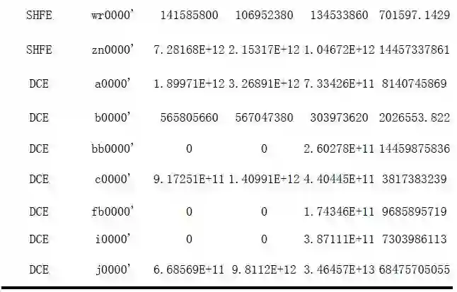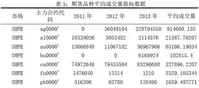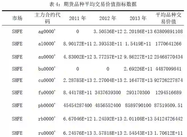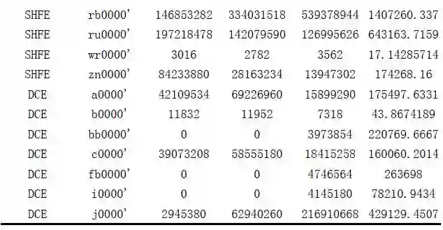 综上所述,本文是通过上述价格波动性的描述,市场交易活跃度体现的资金流动情况,从量价配合角度选取的成交量指标,以及为降低所选标的风险性考虑到的标的交易价值指标综合评价不同交易所的交易品种。
