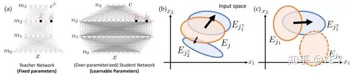 一个相近的研究是FAIR大佬Tian, Yuandong的《Luck Matters: Understanding Training Dynamics of Deep ReLU Networks》。文中验证运气的方式是提出了一种小teacher-大student的训练框架(基于ReLU的MLP),然后发现,对于一个参数足够小使得node间overlap很小的teacher小网络,student大网络中和teacher网络中重合度最高的node对应的权重收敛速度更快,并且那些无关权重的fanout会渐渐向0收敛。
