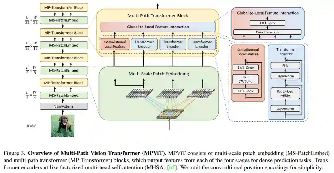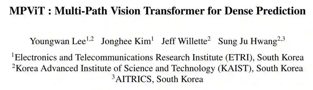 在这项工作中,作者以不同于现有Transformer的视角,探索多尺度path embedding与multi-path结构,提出了Multi-path Vision Transformer(MPViT)。