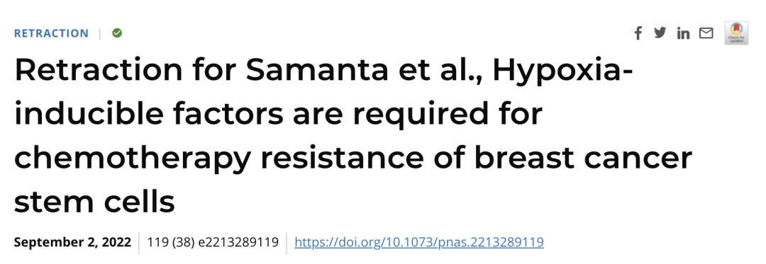 识别出正确的图像,并且不需要新的实验来纠正上述问题。这些更新的数据可以在 bioRxiv 上发布的预印本文章中找到,「Enrichment of breast cancer stem cells following cytotoxic chemotherapy is mediated by hypoxia-inducible factors」(https://doi.org/10.1101/2022.06.27.497729)。我们相信这篇论文的总体结论仍然有效,但由于对这些图片的潜在担忧,我们正在撤回这项工作。我们对不便表示抱歉。
