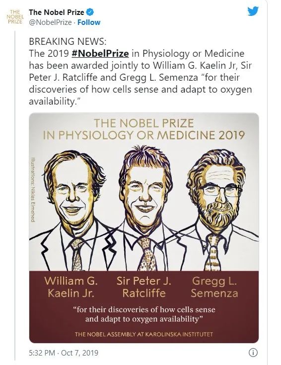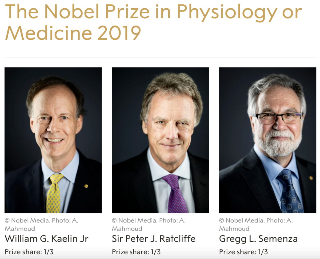 其中,威廉·凯林(William G. Kaelin Jr)为美国癌症学家,彼得·拉特克利夫(Sir Peter J. Ratcliffe)为英国医学家,格雷格·塞门扎(Gregg L. Semenza)为美国医学家。