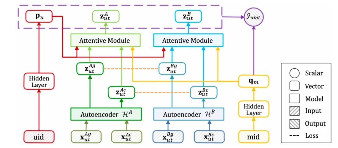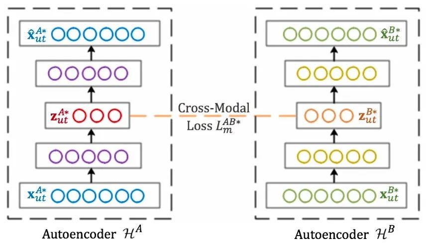 该工作考虑了全局特征和局部特征对用户推荐都存在影响这一因素,它为每个模态计算了全局特征(根据用户进行平均)和局部特征(根据近邻交互进行平均)。然后分别对不同模态,不同层次的特征使用 Autoencoder 来获取低维表示。同时为了不同模态的特征能够互补,该工作为这个 Autoencoder 设计了 Cross-Modal 的损失函数。