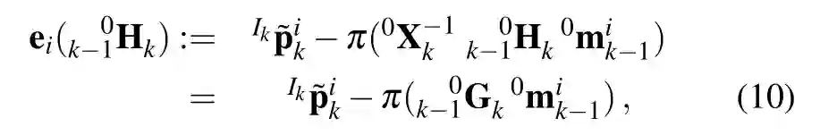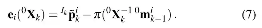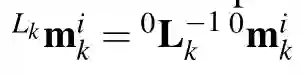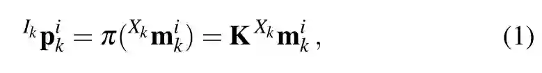 定义Ik为与相机在k时刻捕捉到的图片左上角的参考系。通过投影函数 (.)得到齐次三维点IkPik在坐标系Ik上的像素位置:
