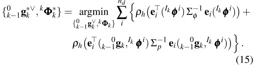 通过对 进行李代数参数化,将(8)代入(7),得到最小二乘代价的解为: