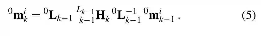 0mik为第i个三维点在k时刻的齐次坐标,0mi=[mix,miy,miz,1]T IE3,i (点集).我们在机器人/相机框架中描述一个点的形式例如:xkmik=0X-1k0mik