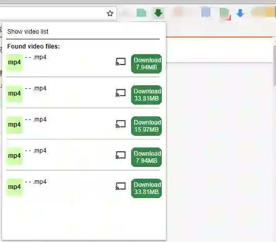 直接在Chrome浏览器应用商店中搜索插件即可。网页中出现视频时,这两个图标就会变成箭头状,下拉可找到视频进行下载。
