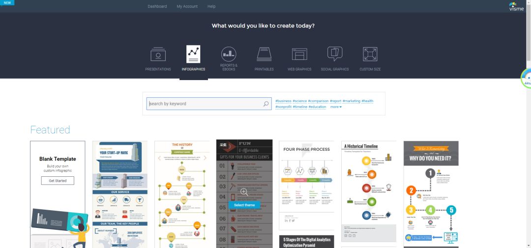 一款做长信息图表的工具。网站提供了多个长图模板,可以根据场景取用,比如年终数据总结、项目进度、项目情况介绍等,通过调整模块和icon,修改数据,生成自己的信息图表。
