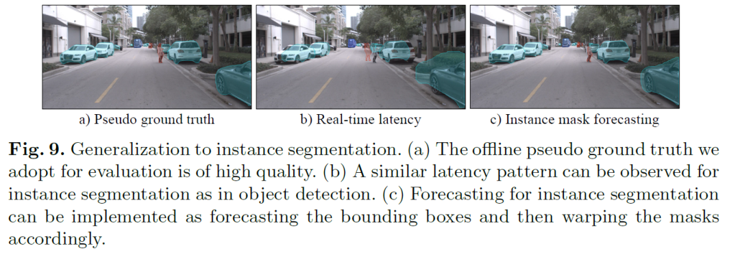 以这种评估方法优化得到的算法还无法应用在实时在线的感知场景中,因为当算法完成对某一帧图像的处理时,比如200ms后,周围的环境就已经发生了变化。如下面的视频所示,算法在得到第一帧中车辆的分割结果后,车辆就已经运动到另一个位置了,那此时所得到的分割结果的意义就很小了。