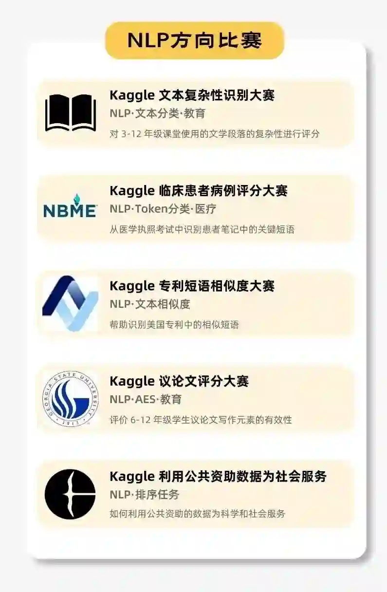 NLP方向选出了5场比赛TOP方案,涵盖文本分类、AES等NLP任务,覆盖医疗、教育等应用领域。
