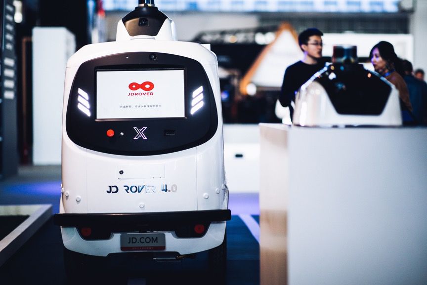 在这次的京东JDD大会上,京东集团副总裁、X事业部总裁肖军发布了两款最新研发的智能物流设备——配送机器人4.0和室内移动通用平台。
