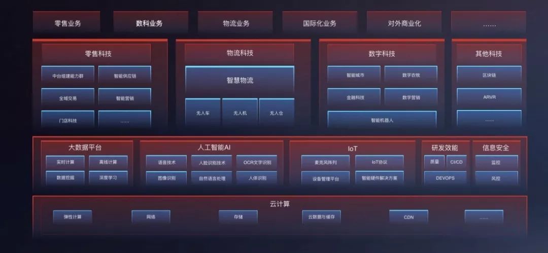 比如在零售技术体系中,京东已拥有中台组件能力群、智能供应链、全域交易、智能营销、门店科技等技术;