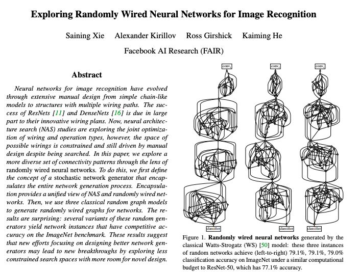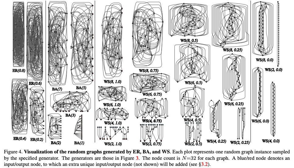 我们通过随机网络生成器采样的随机连接神经网络来探讨这个问题,其中人工设计的随机过程定义了生成。