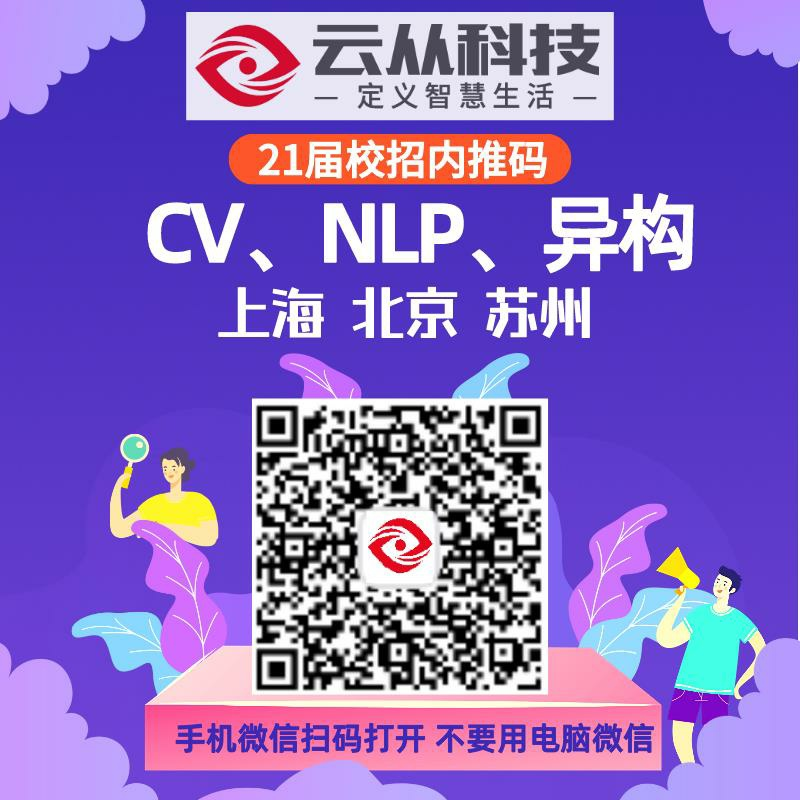 邮箱主题/简历命名格式:云从内推+岗位名称+姓名+CVer推荐