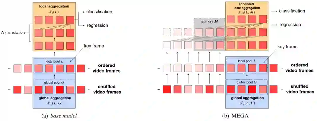 在视频物体检测任务中,由于相机失焦、物体遮挡等问题,仅基于图像的目标检测器很可能达不到令人满意的效果。一般来说,人类主要通过两类信息来辅助对质量较差的帧进行物体检测,即局部定位信息与全局语义信息。从这个角度出发,我们发现目前的视频物体检测方法都仅单独考虑了其中一种信息进行辅助目标检测。除此之外,另一个在现存方法中存在的问题就是整合规模不足,也就是关键帧能够使用信息的范围较少。