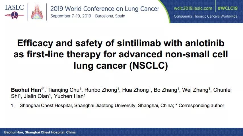 1.Han BH,Chu TQ,Zhong RB,et al.Efficacy and safety of sintilimab with anlotinib as first-line therapy for advanced non-small cell lung cancer (NSCLC)[EB/OL].WCLC 2019,abstract P1.04-02.