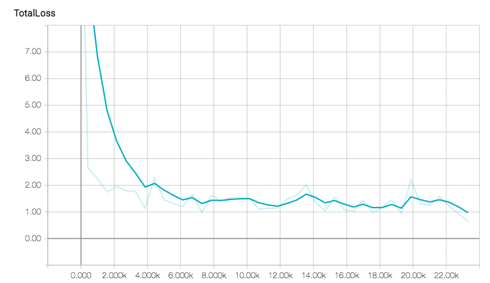 下面是我的训练和评估工作结果。总体来说,我以批量大小24运行了一个小时,约22000步。在大概40分钟时我已经得到了很好的结果。