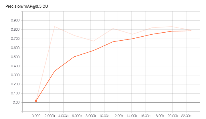 平均准确率在20000步的时候就达到了0.8,这个结果很不错。