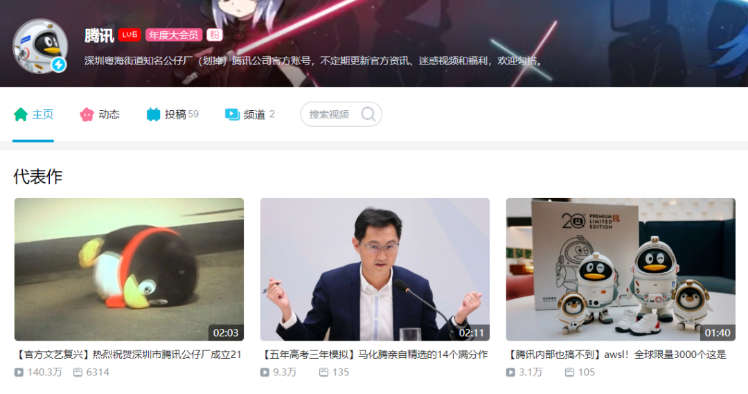 正常思维下,腾讯开通B站官方账号,至少应该给自己一个“国内知名互联网公司”的头衔吧?