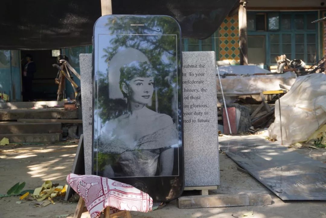 iPhone墓碑石材是山西浑源产的一种名叫“中国黑”的花岗岩,色泽黑亮,密度极硬。王成花了两天时间切割打磨到合适尺寸,碑面由张展昭亲自操刀,雕刻了他的偶像奥黛丽.赫本。