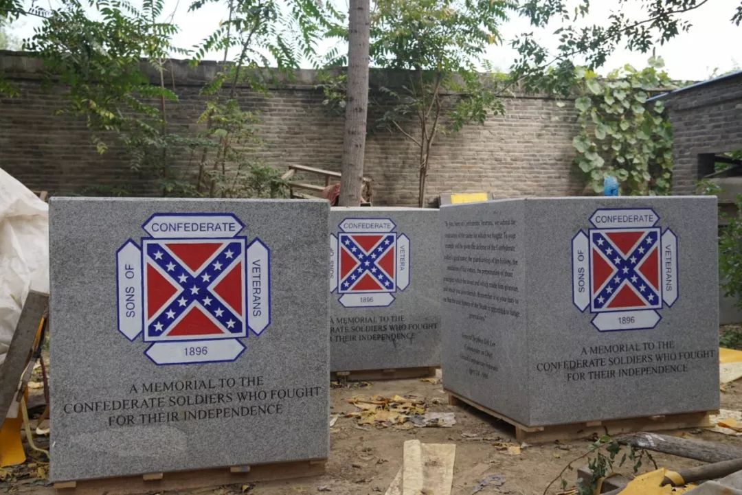 雕刻的间隙,杨欣好奇地打量起了手下这些英文字母。她一边用百度搜索单词,尝试着翻译给师父听。原来,图案是“美利坚联盟国”旗帜,下面那行字写着“为美利坚联盟国独立而抗争过的邦联战士纪念碑”。